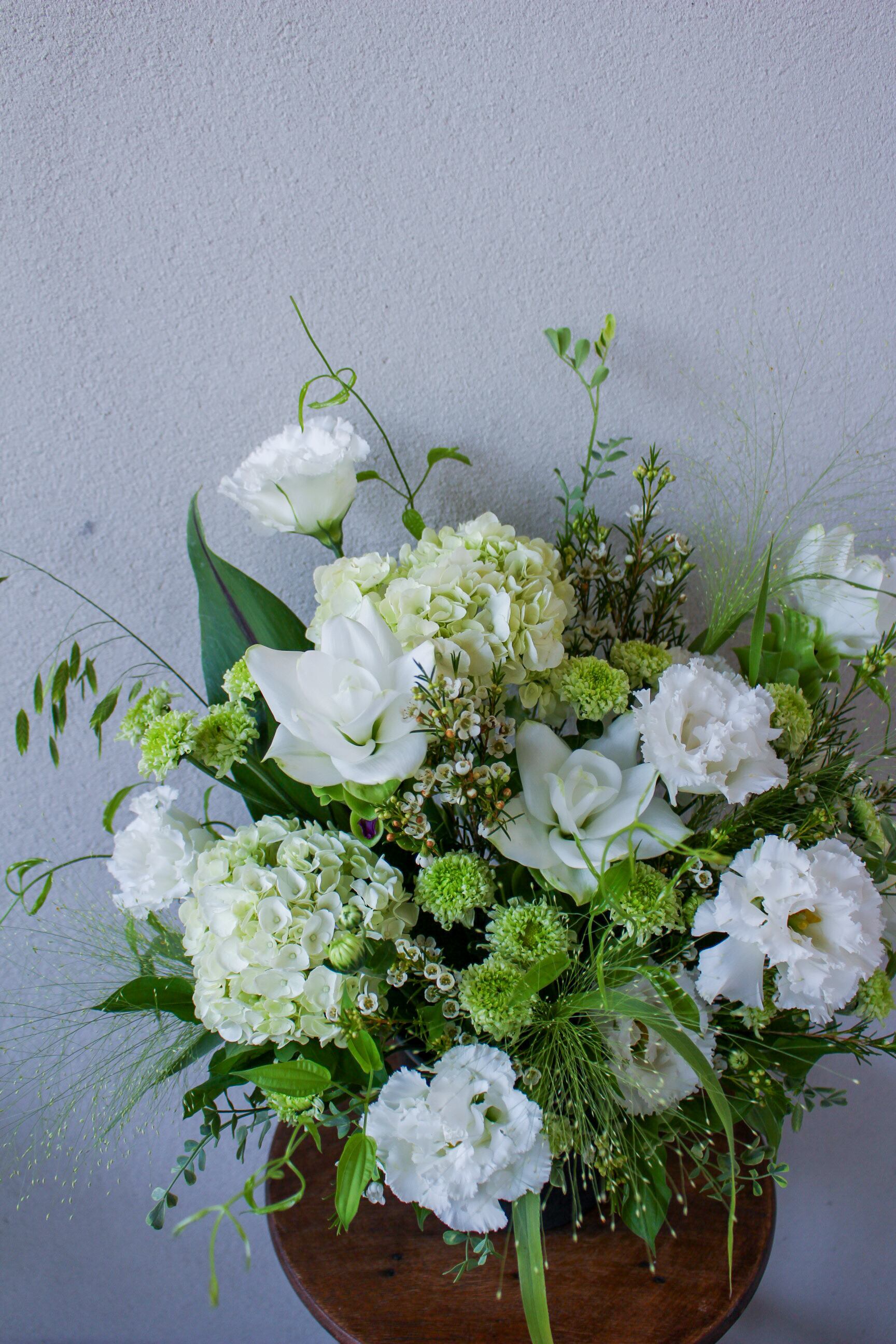 グリーンと白メインでアレンジしております。